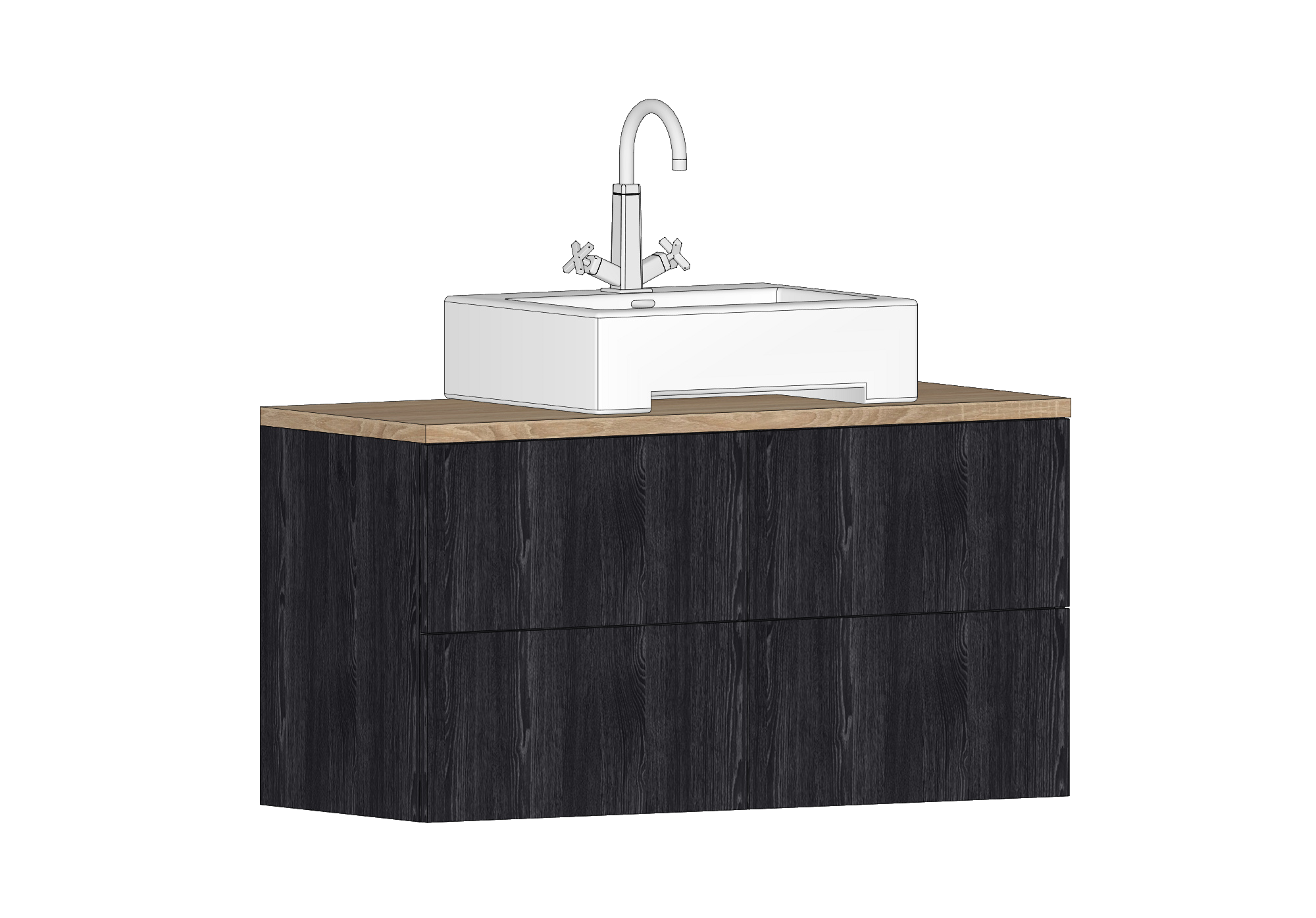 Liebevoll und hochwertig verarbeiteter Badunterschrank zur Nutzung mit Aufsatzwaschbecken